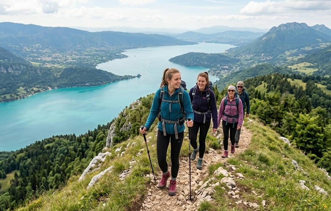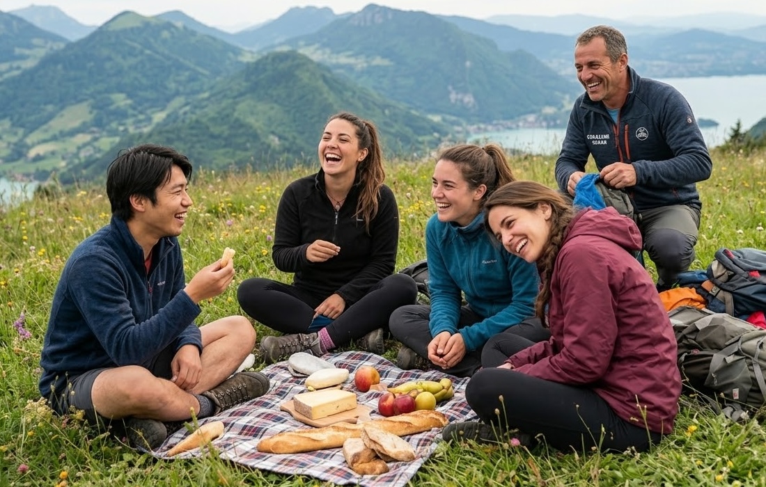 Esta actividad es una forma divertida y natural de crear vínculos, desconectar de la rutina diaria y progresar en francés mientras se descubre el entorno de montaña alrededor de Annecy.
